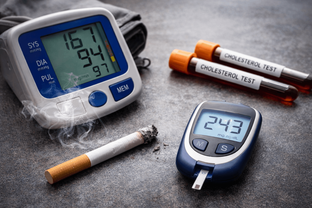 - ignorowano historię palenia lub epizody podwyższonego cukru/cholesterolu.